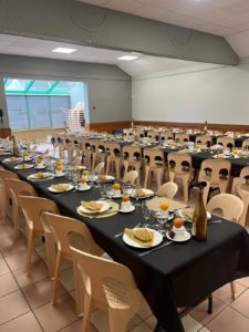 | Salle + annexes* Associations communales – WE ou semaine (si manifestation à but lucratif) | 48 h max. | Non | Non | Oui | 50.00 € | – € |